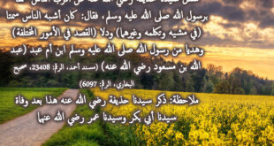 قال سيدنا عمر بن الخطاب رضي الله عنه: كان رسول الله صلى الله عليه وسلم لا يزال يسمر (يتكلم بعد العشاء) عند أبي بكر الليلة كذلك لأمر من أمر المسلمين، وإنه سمر عنده ذات ليلة وأنا معه، ثم خرج رسول الله صلى الله عليه وسلم (من بيت سيدنا أبي بكر …