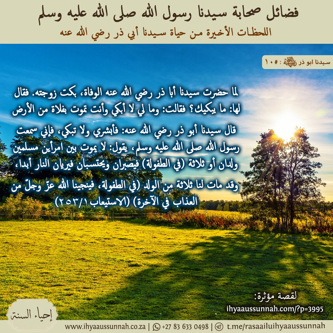 فرد سيدنا يزيد رضي الله عنه على الرجل جاريته ولحق سيدَنا أبا ذر رضي الله عنه فقال له: أذكرك بالله: أنا هو قال: اللهم لا